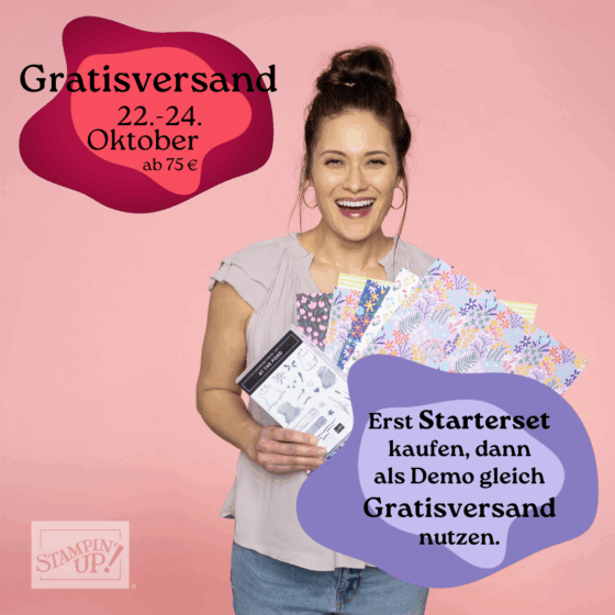 Nicht verpassen, vom 22.-24. Oktober bekommst Du Deine Bestellungen versandkostenfrei (ab 75 Euro). Diese Aktion können Kundinnen und Kunden nutzen und außerdem alle Demonstratoren. Wenn Du also noch Wünsche auf Deiner Liste hast, dann ist in den kommenden drei Tagen der perfekte Zeitpunkt für einen Einkauf. Oder mach es wie Birgit, die frisch in mein…